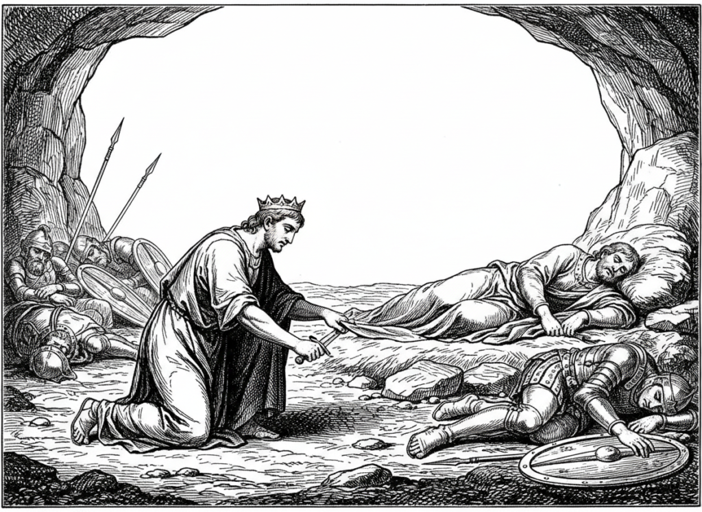 The monarch slept unaware of his peril